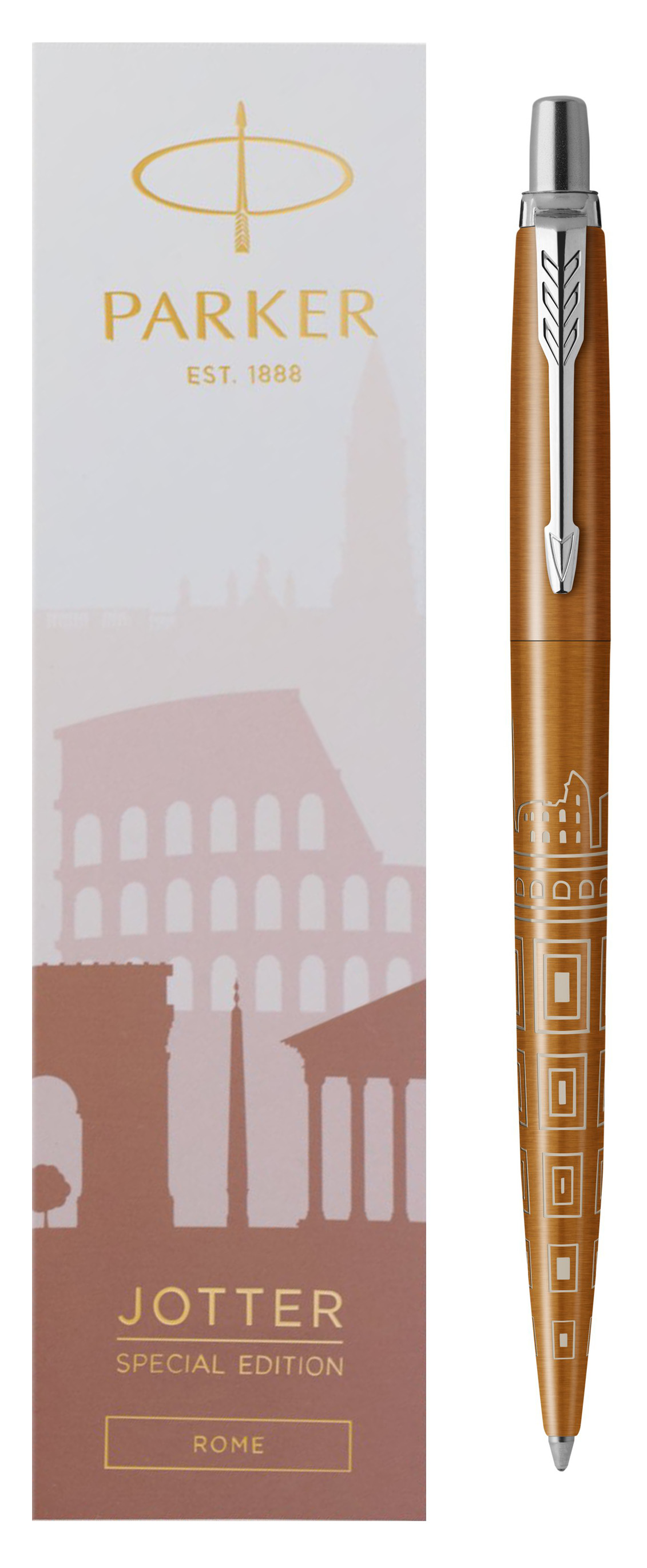 Ручка шариковая Parker Jotter Rome Bronze CT от официального дилера Parker в Сочи. Вы можете дополнительно заказать гравировку, которая подчеркнет Вашу оригинальность и придаст памятность статусному подарку. Все ручки Паркер поставляются в фирменном футляре.
